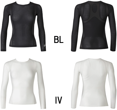 【サイズ】 S バスト72〜80 身長146〜154 M バスト79〜87 身長154〜162 L バスト86〜94 身長154〜162 【特徴】 ジュウリュウトップ(メッシュタイプ) ラウンドネック(長袖) サポート部位:肩甲骨、広背筋、腹斜筋 本体部分にメッシュ素材を使用し、脇切り替え部分は大穴メッシュ構造で、熱・ムレを逃して涼しく快適。