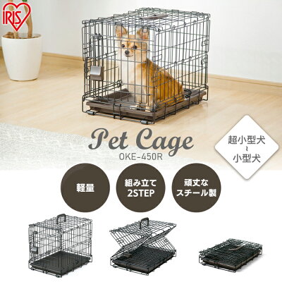 折りたたみケージ アイアンブラック OKE-450R小型犬用 犬 犬用 猫 ケージ サークル ペットゲージ 犬ゲージ ドッグケージ 折りたたみ ペット ペット用 多頭飼い 多頭 キャリー 屋根付き お出かけ アイリスオーヤマ